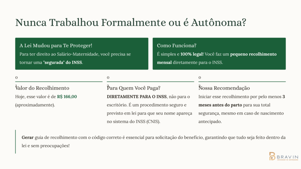 O entendimento sobre isso mudou justamente para garantir que todas as mamães possam ter esse direito e cuidar do seu bebê com dignidade, mesmo quem nunca trabalhou de carteira assinada ou era autônoma!